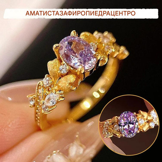 Най-продаван пръстен с цвете Баухиния за жени: Луксозен пръстен с лилави диаманти.