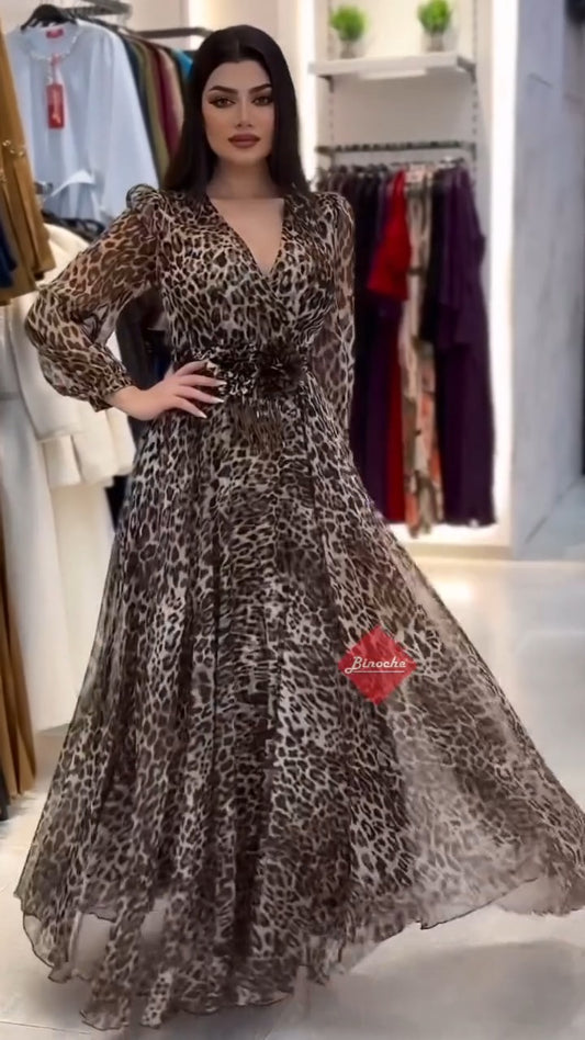 🌷🌷【S-5XL】Нова рокля с леопардов принт, голям размер