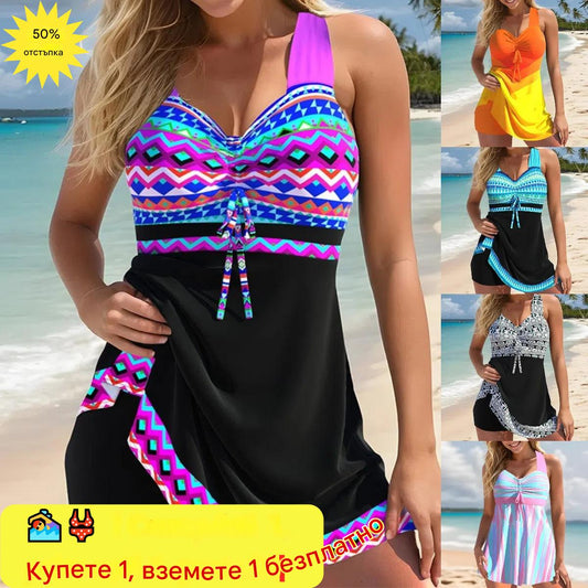 🏖️【S-5XL】【Топ+панталон】Дамски комплект бански с щампа 2025
