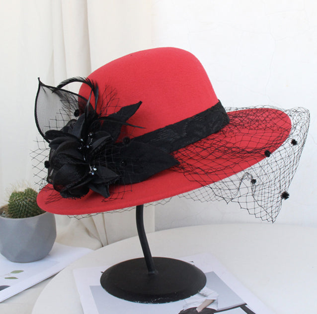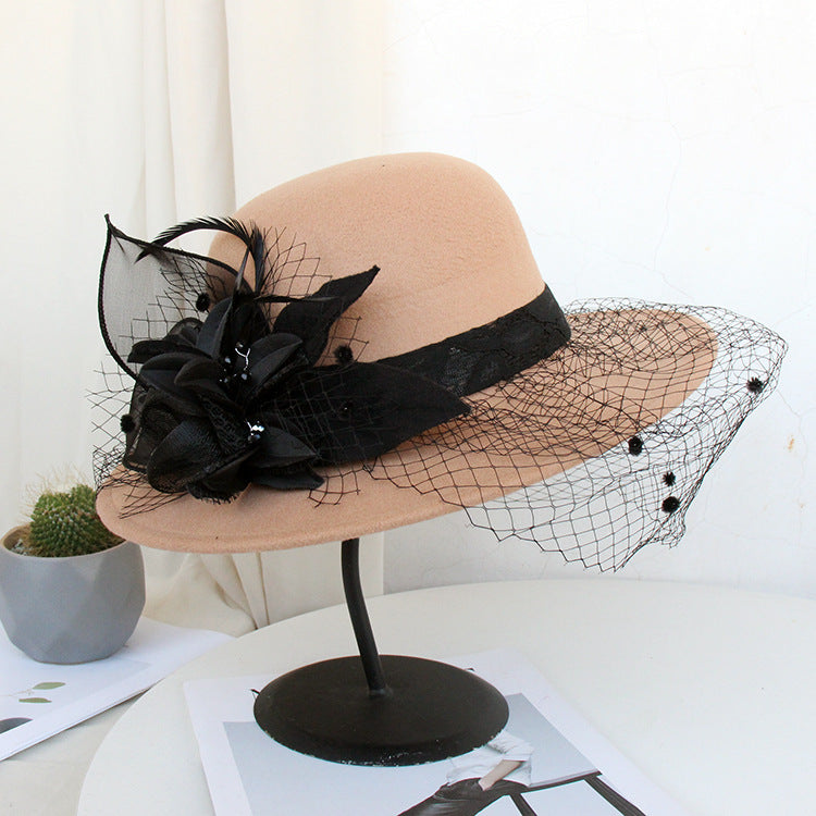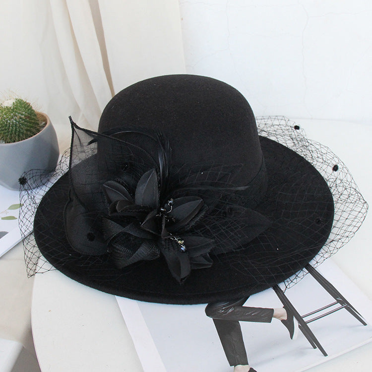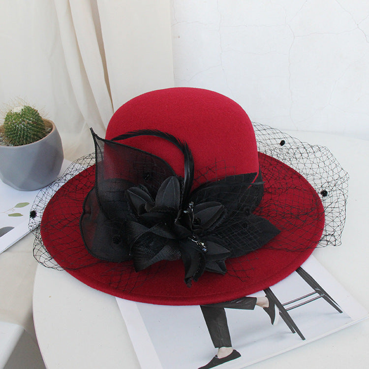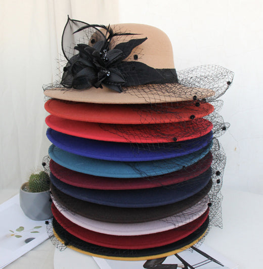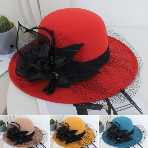 【Горещи продажби】Есенна и зимна двуцветна шапка с голяма панделка, филцова шапка, вълнена шапка