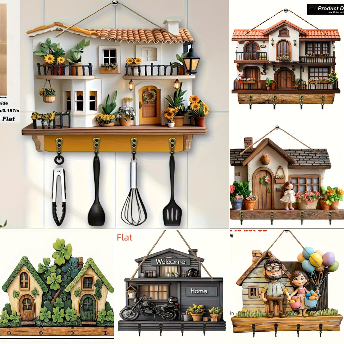 【Купете 1, вземете 1 безплатно】Висулка за ключодържател за веранда, дървена декорация, красива дървена кука за домашен декор