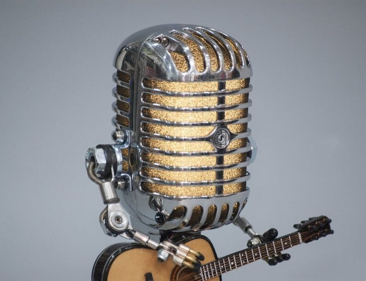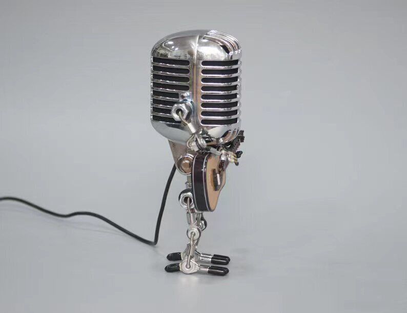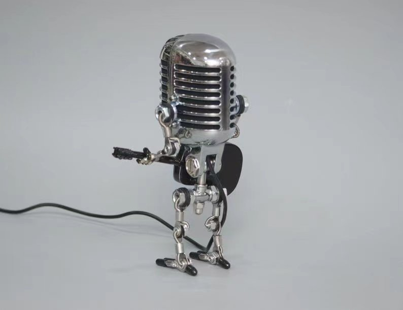 【Купете 1, вземете 1 безплатно】🎁Винтидж метална настолна лампа с робот-микрофон