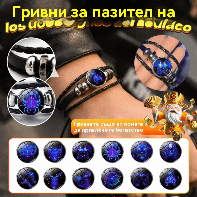 【Купете 1 и вземете 1 безплатно】🌙Светяща гривна на зодиака|Защитна гривна от плетена кожа|Привлича късмет и просперитет