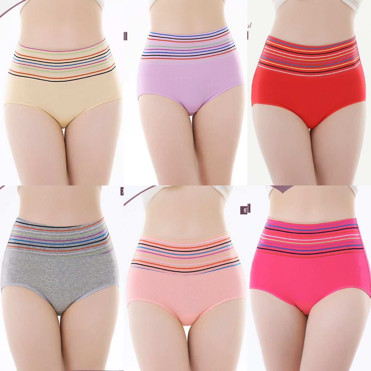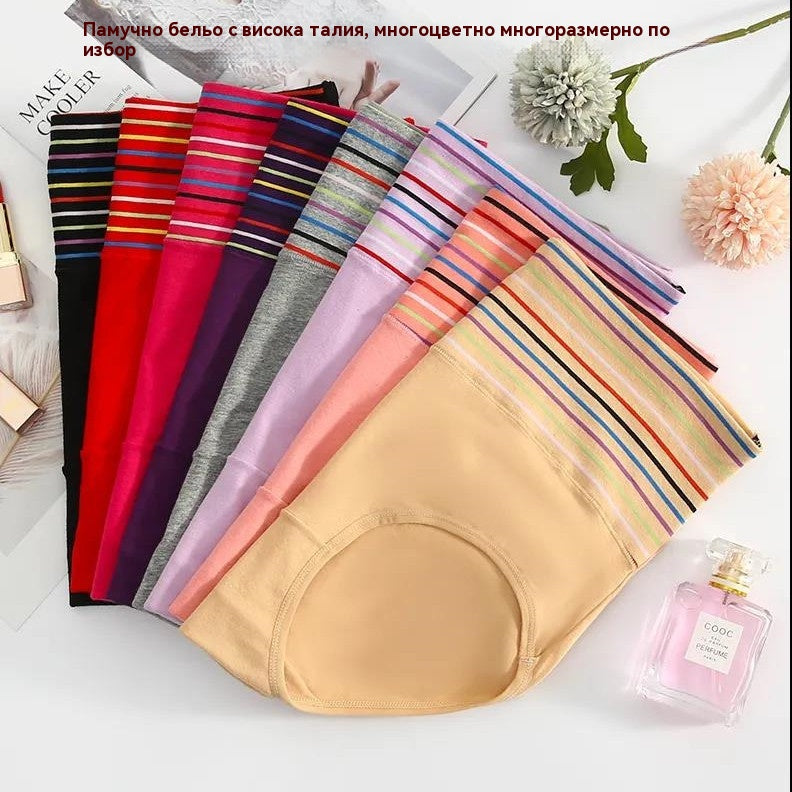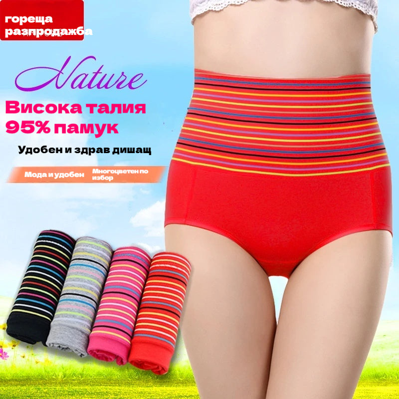 【купете 3 безплатни 3】【XL-3XL】Дамско бельо от раиран памук с висока талия и контрол на корема