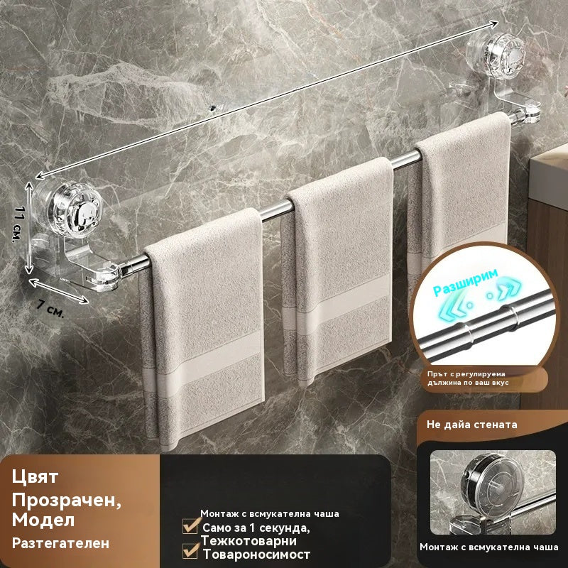 ✨🚿Лек дизайн без пробиване — Прибираща се поставка за кърпи с вендуза
