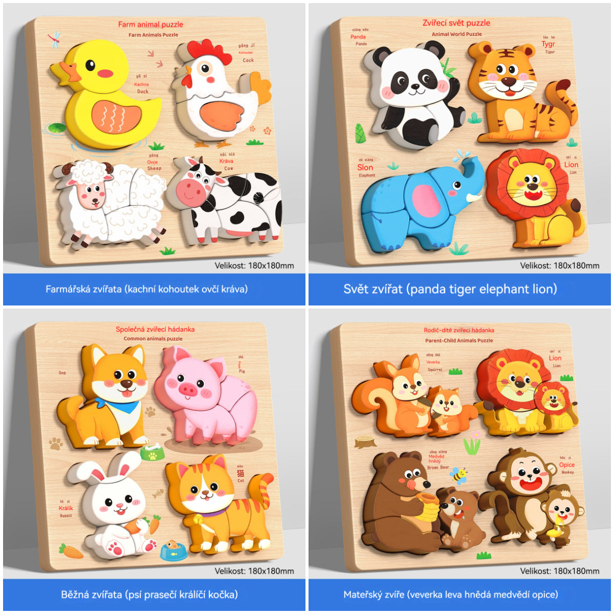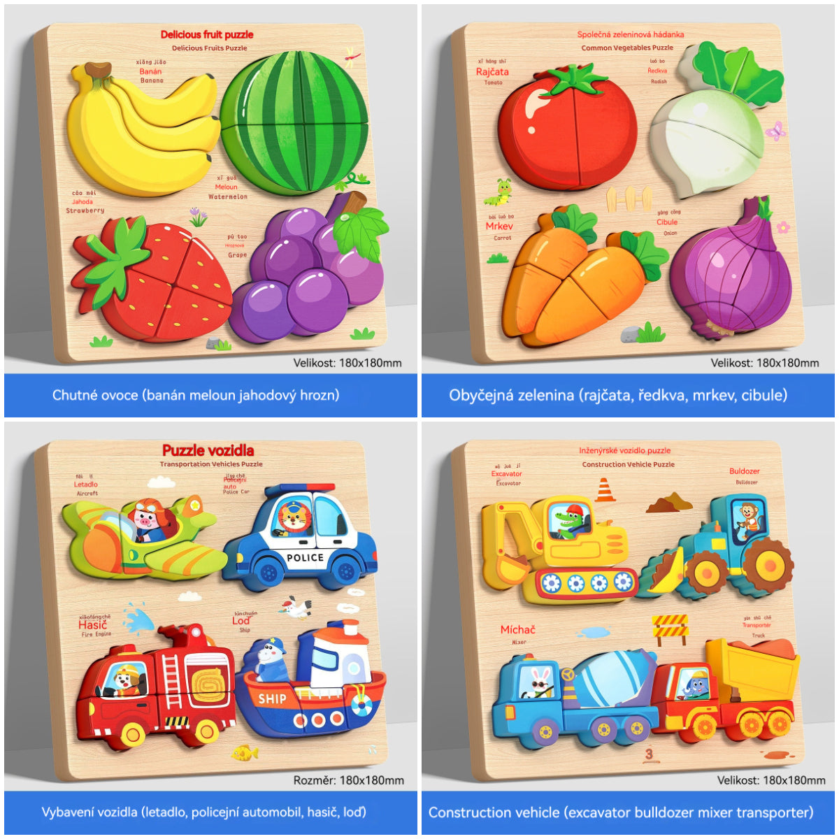 👧🏻🧩【1 комплект от 16 стила】 Дървени 3D пъзели Монтесори за образование в ранна детска възраст