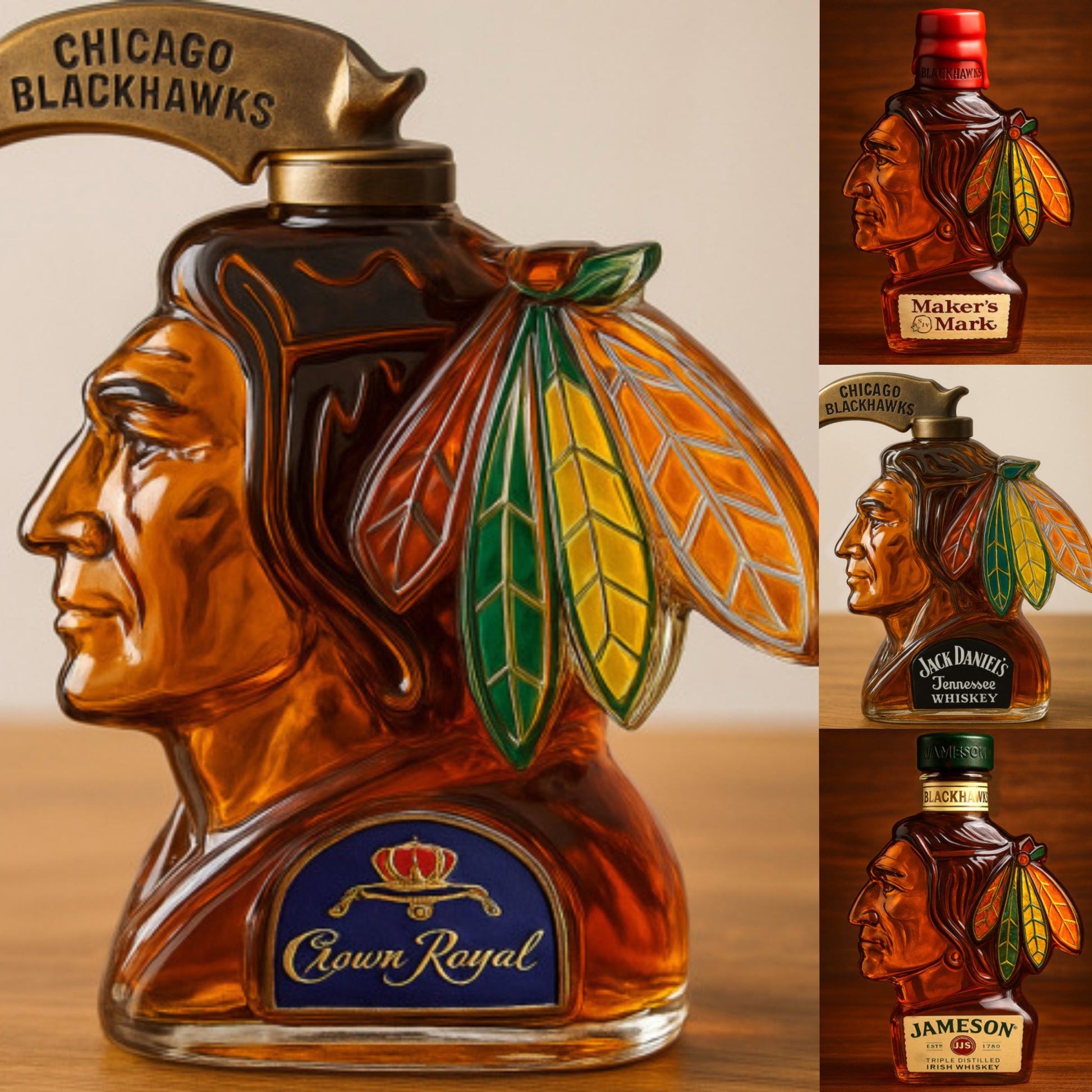 🔥🔥Стъклена бутилка с форма на глава на Блекхоукс, интересна бутилка уиски
